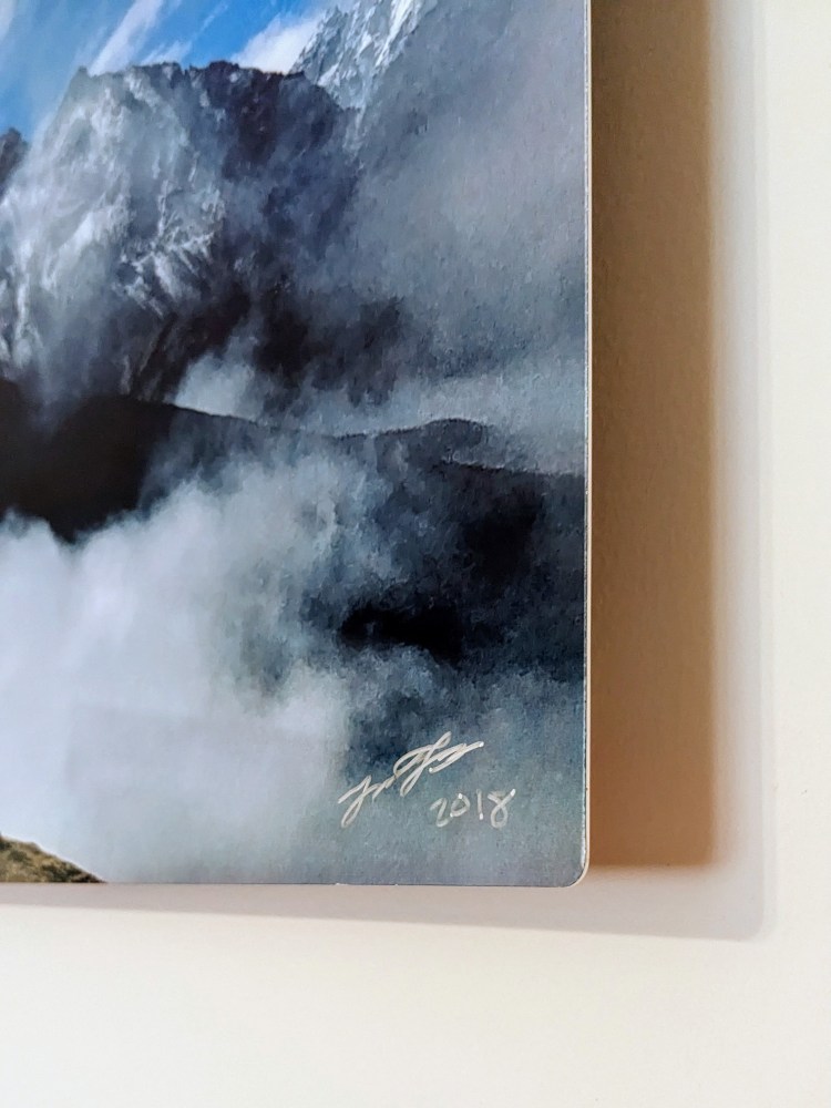 Metal art pieces go through a 3 layer printing process to give them that incredible pop. First, a layer of white is coated onto the metal. The Images are then infused into the specially coated aluminum panel, followed by a UV protectant gloss sealant to protect the image. This high gloss infused metal art piece brings your image to life, due to its impressive pop and saturation. Note, increased pop and gloss can lead to a slight glare when viewed under strong light, but these are tradeoffs you often encounter with this style of printing. Typically, to have lower reflectivity you would have more muted colors and a loss in vibrance.